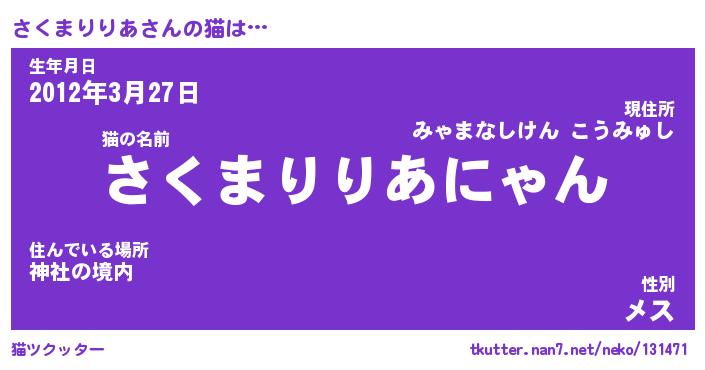 | 生年月日? …「くろねこ」 | 8月01日 10:16 |