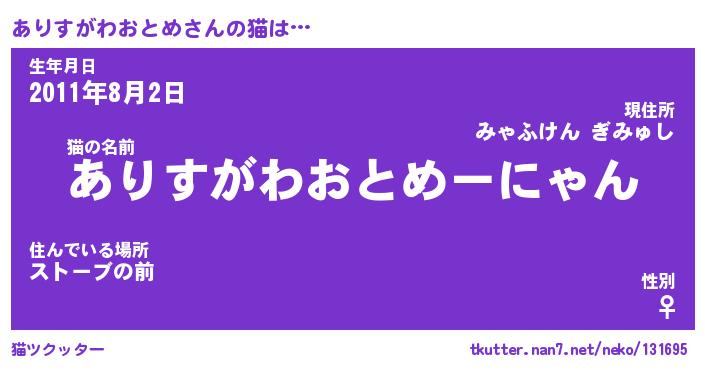 | 肩書あだ名 | 『ありすがわおとめ店長』 |