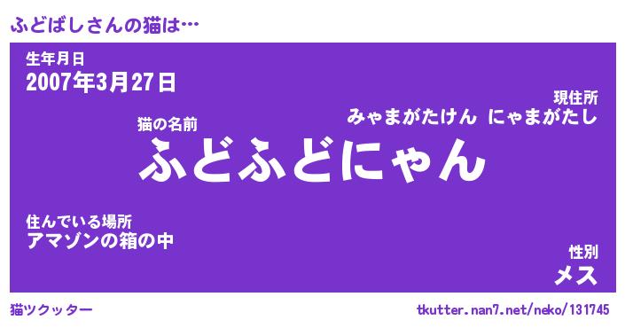 | ツイッター | ふどばしさんのツイッターID『namakemono_kun』 |
