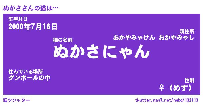 | ポケモン風あだ名 | 『ヌカチュウ』『ヌカサダネ』 |