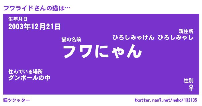 | 可愛いあだ名 | 『フんフん』『フワちー』 |