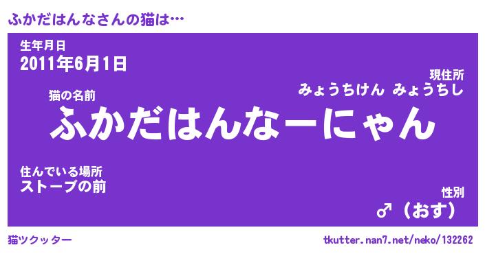 | 2回繰り返すあだ名 | 『ふかふか』『ふふかか』『うずうず』 |