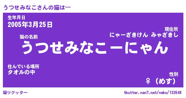 | ポケモン風あだ名 | 『ウツチュウ』『ウツセダネ』 |
