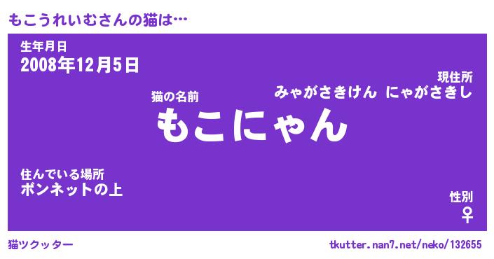 | ヘコむあだ名 | 『もこにゅー』『レバニラ』 |