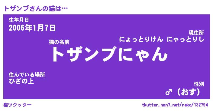 | ポケモン風あだ名 | 『トザチュウ』『トザンダネ』 |