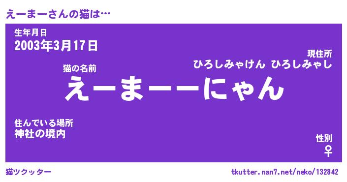 | 意味不明あだ名 | 『ペロリンえーまー』『永久保存えーまー』 |
