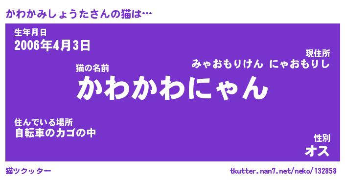 | ポケモン風あだ名 | 『カワチュウ』『カワカダネ』 |
