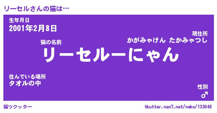 | 意味不明あだ名 | 『ペロリンリーセル』『永久保存リーセル』 |