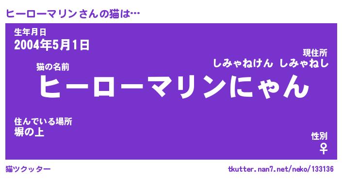 | 欧米人風あだ名 | 『マイケルヒーローマリン』 |