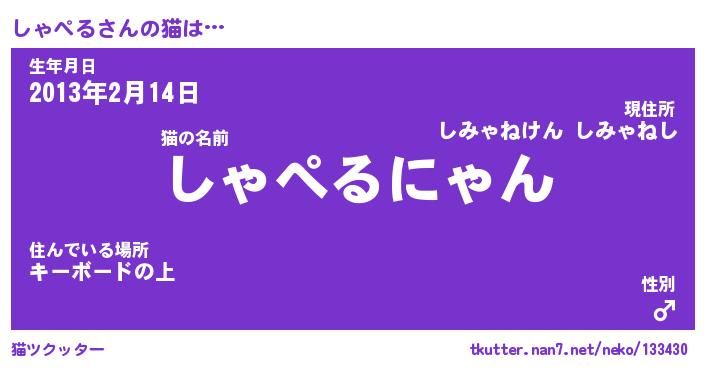 | 意味不明あだ名 | 『ペロリンしゃぺる』『永久保存しゃぺる』 |