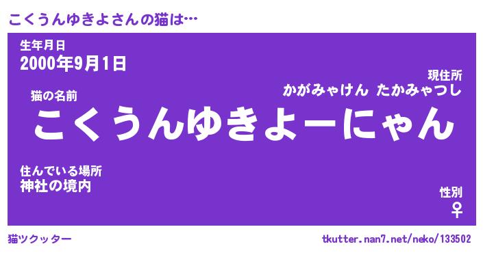 | ツイッター | こくうんゆきよさんのツイッターID『neet_nyan』 |