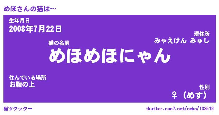 | 意味不明あだ名 | 『ペロリンめほ』『めほフォーエバー』 |