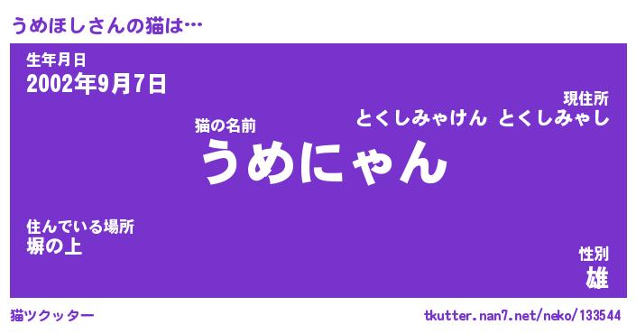 | ファンタジー風あだ名 | 『ウメフェル』『エターナルウメホシー』 |