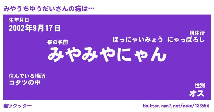 | ファンタジー風あだ名 | 『ミヤフェル』『ファントムミヤス』 |