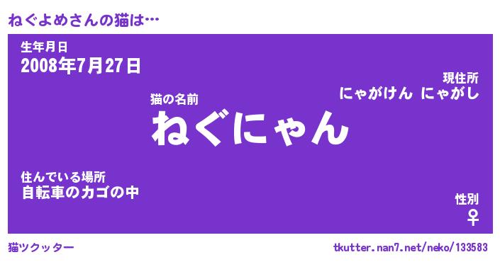 | 2回繰り返すあだ名 | 『ねぐねぐ』『ねねぐぐ』『にぎにぎ』 |