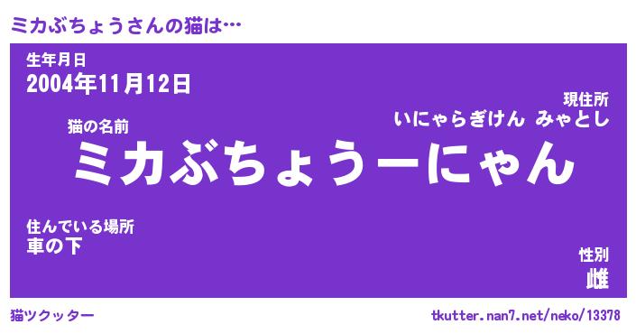 | 欧米人風あだ名 | 『マイケルミカぶちょう』 |