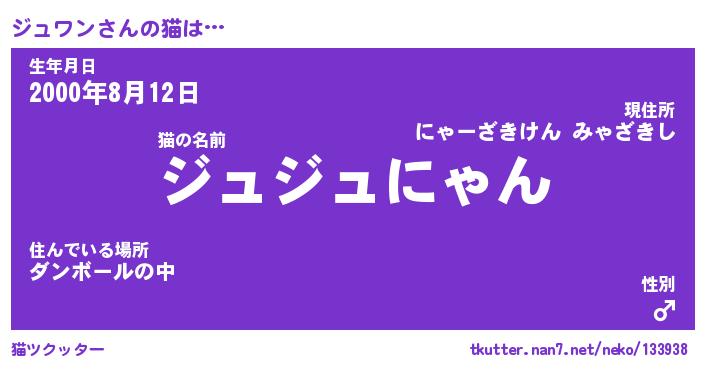 | 2回繰り返すあだ名 | 『ジュジュ』『ジジュュ』『おたおた』 |