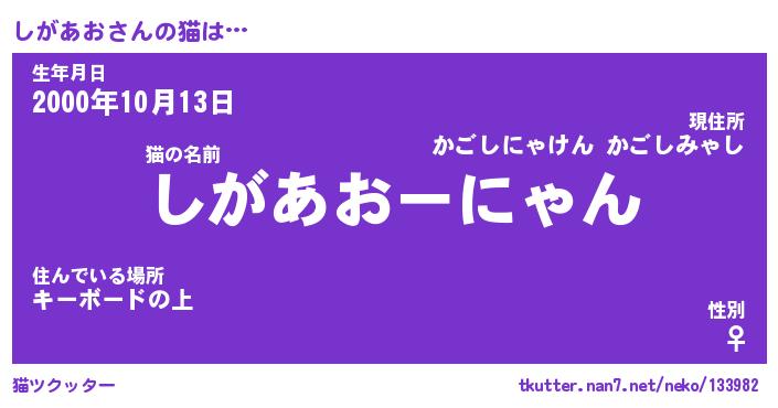 | 意味不明あだ名 | 『ペロリンしがあお』『永久保存しがあお』 |