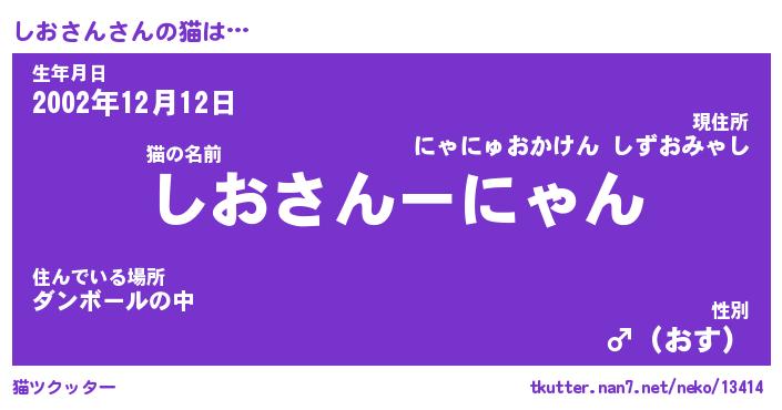 | 意味不明あだ名 | 『ペロリンしおさん』『永久保存しおさん』 |