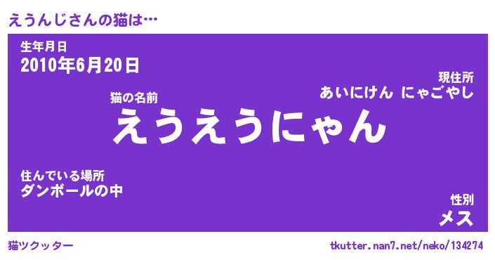 | 意味不明あだ名 | 『ペロリンえうんじ』『永久保存えうんじ』 |