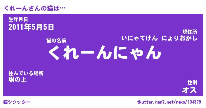 | 意味不明あだ名 | 『ペロリンくれーん』『永久保存くれーん』 |
