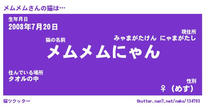 | ポケモン風あだ名 | 『メムチュウ』『メムメダネ』 |