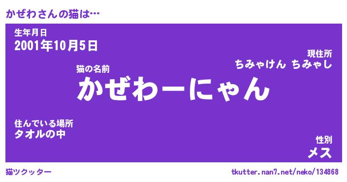 | ファンタジー風あだ名 | 『カゼフェル』『エターナルカゼワー』 |