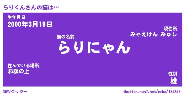 | 生年月日? …「くろねこ」 | 8月01日 10:16 |