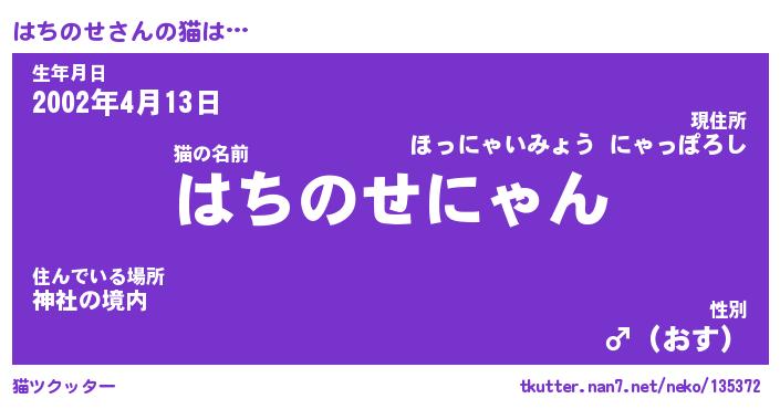 | 意味不明あだ名 | 『ペロリンはちのせ』『永久保存はちのせ』 |