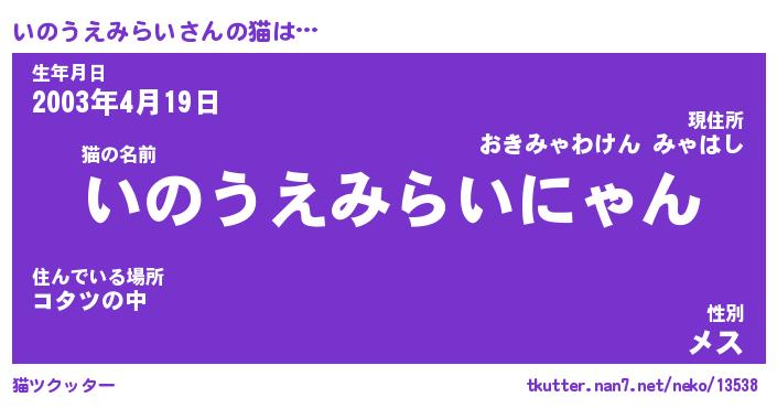 | 意味不明あだ名 | 『ペロリンいのうえみらい』 |