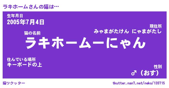 | 肩書あだ名 | 『ラキホーム店長』『ラキホーム総理大臣』 |
