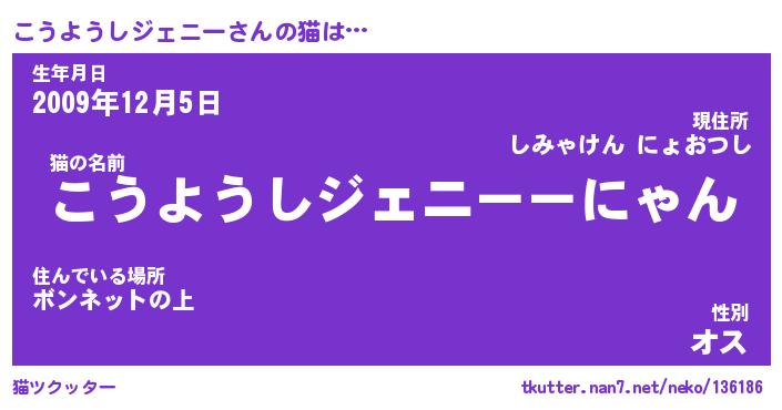 | 欧米人風あだ名 | 『マイケルこうようしジェニー』 |