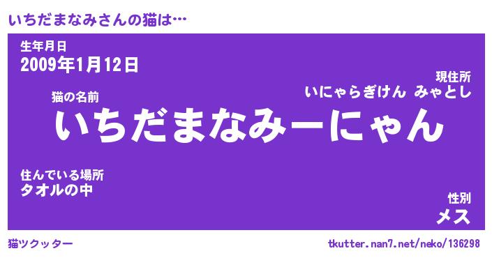 | 自動車の名前っぽいあだ名 | 『イチティマ』『イスラー』 |