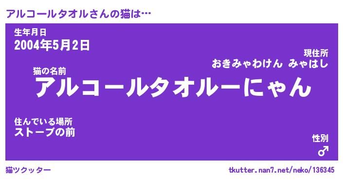 アルコールタオルさんの猫をツクッター!