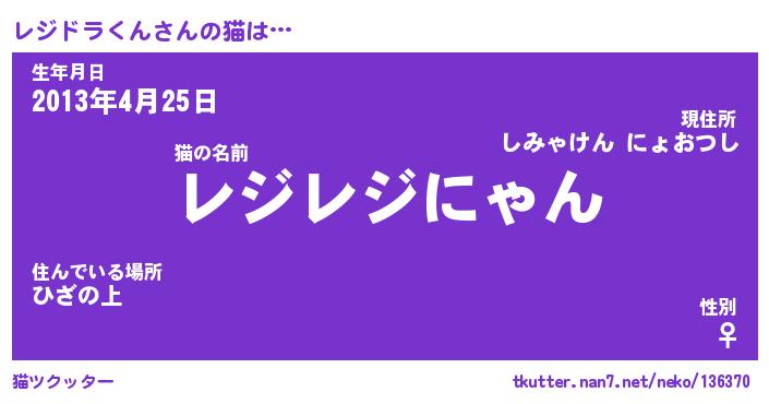 | ツイッター | レジドラくんさんのツイッターID『namakemono_kun』 |