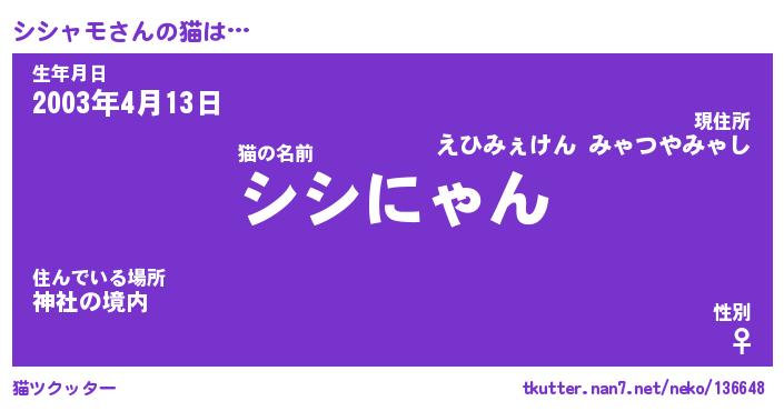| ファンタジー風あだ名 | 『シシフェル』『エターナルシシャモー』 |