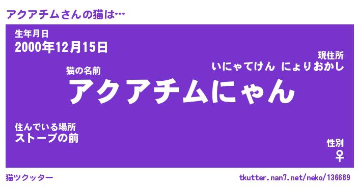 | ファンタジー風あだ名 | 『アクフェル』『エターナルアクアチムー』 |