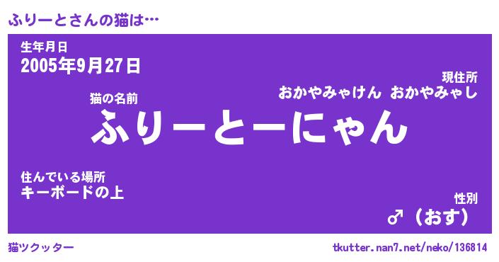 | 意味不明あだ名 | 『ペロリンふりーと』『永久保存ふりーと』 |