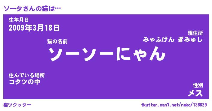 | ポケモン風あだ名 | 『ソーチュウ』『ソータダネ』 |