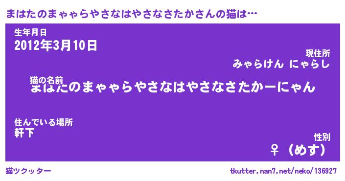 | 肩書あだ名 | 『まはたのまゃゃらやさなはやさなさたか社長』 |