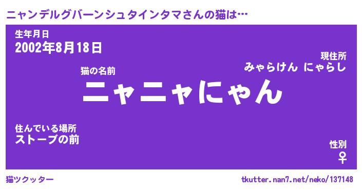 | ヒーロー風カッコイイあだ名 | 『スーパーニャンデルグバーンシュタインタマ』 |