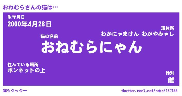 | ポケモン風あだ名 | 『オネチュウ』『オネムダネ』 |