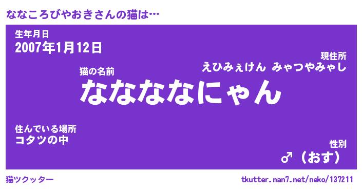 | 生年月日? …「くろねこ」 | 8月01日 10:16 |