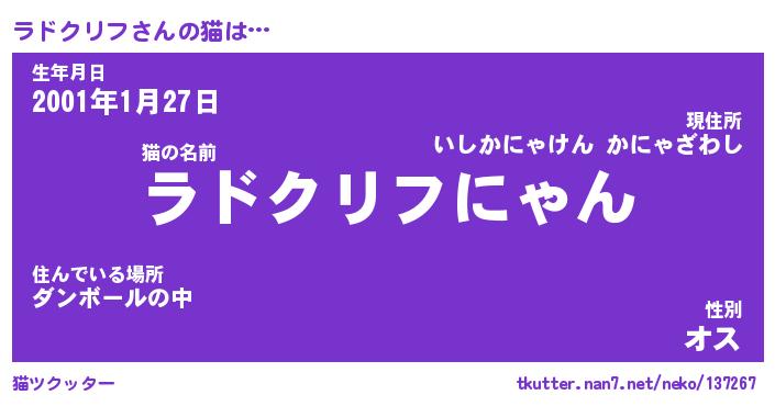 | ファンタジー風あだ名 | 『ラドフェル』『エターナルラドクリフー』 |