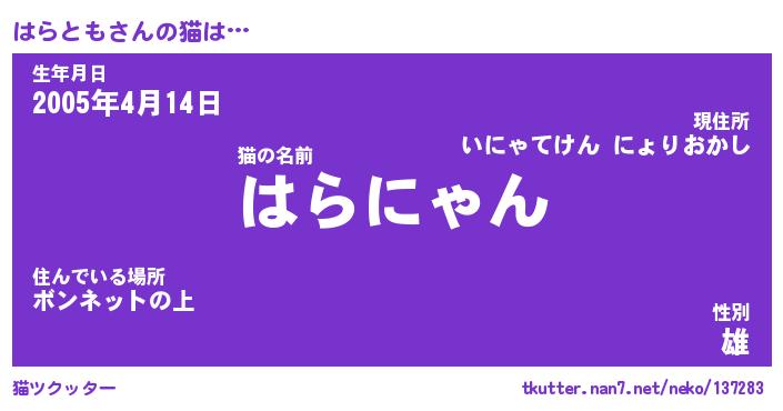 | 生年月日? …「くろねこ」 | 8月01日 10:16 |