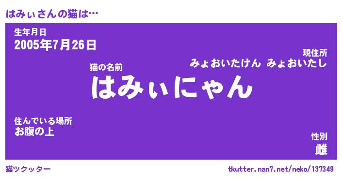 | 意味不明あだ名 | 『ペロリンはみぃ』『はみぃフォーエバー』 |