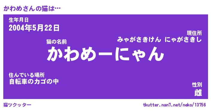 | 意味不明あだ名 | 『ペロリンかわめ』『かわめフォーエバー』 |