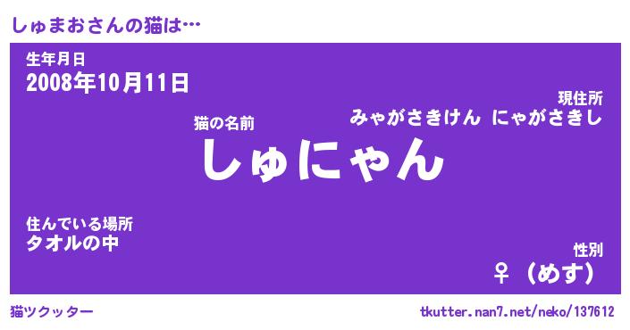 | 2回繰り返すあだ名 | 『しゅしゅ』『ししゅゅ』『うねうね』 |