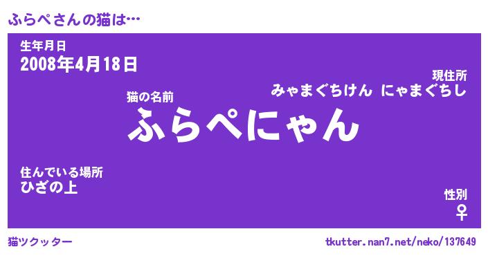 | 意味不明あだ名 | 『ペロリンふらぺ』『ふらぺフォーエバー』 |