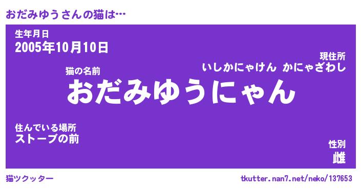 | ファンタジー風あだ名 | 『オダフェル』『エターナルオダミユウー』 |